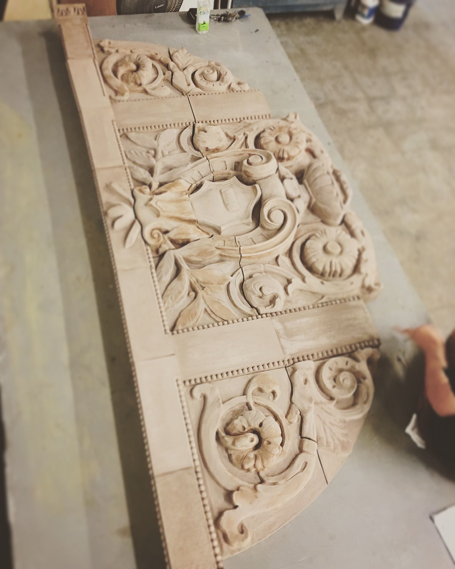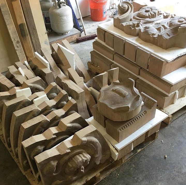 In this historic restoration project, we worked closely with the client to get the Glass Fiber Reinforced Concrete coloring just right to match the existing terracotta on the building. After which, we crafted unique custom flexible rubber molds for over three dozen ornamental facade components that had to be cast