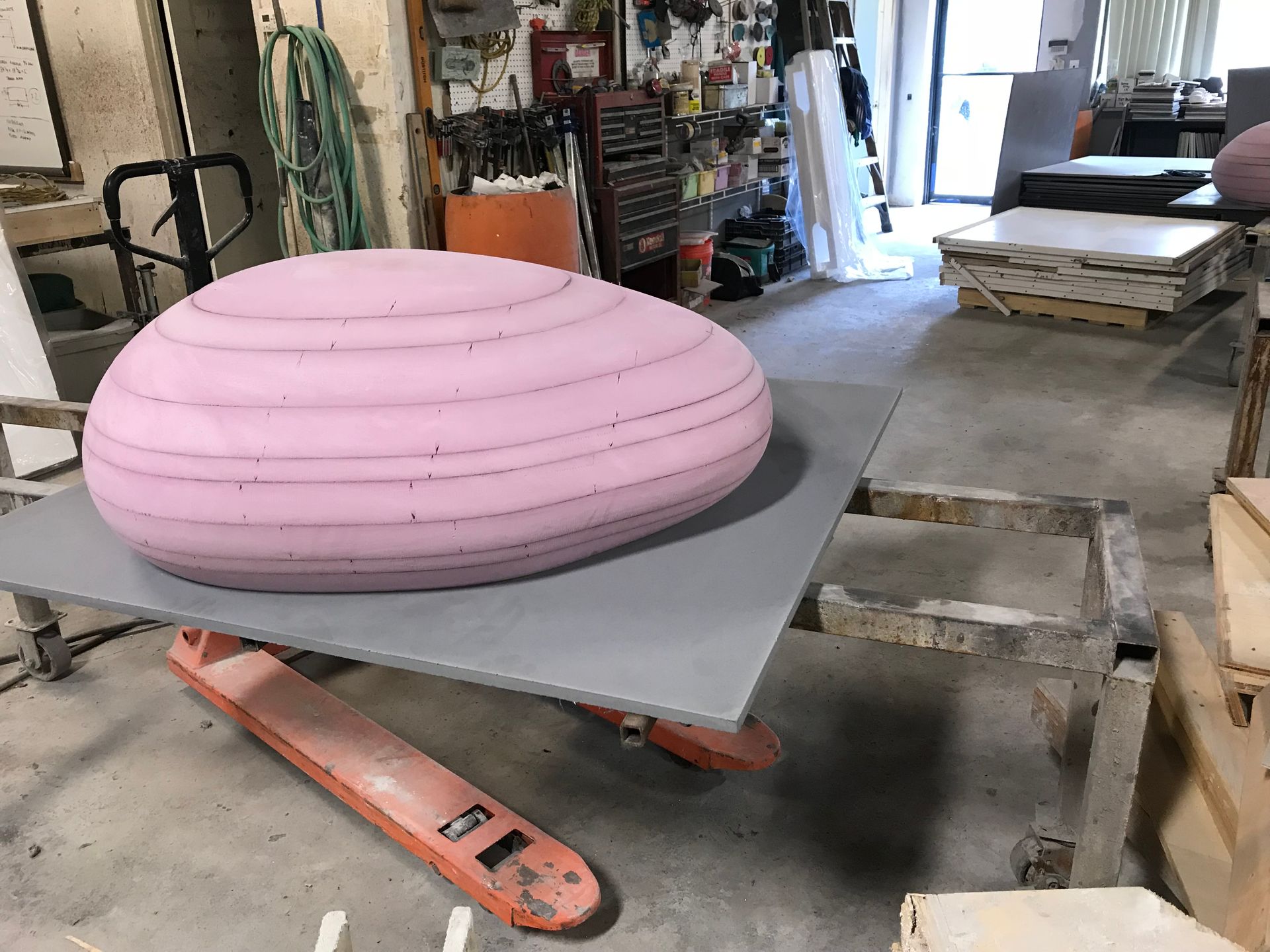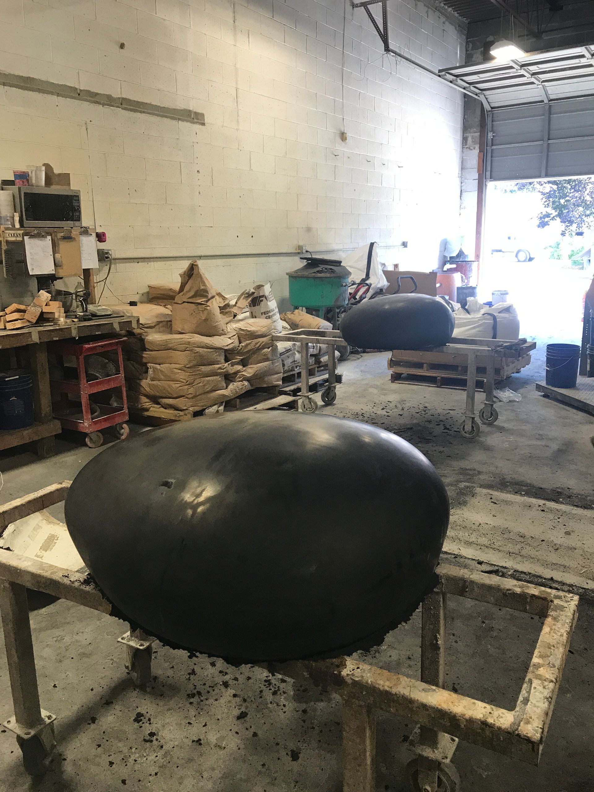 First, we were able to procure a rock from the area that matched a shape that the client liked. Second, we recreated that shape as a 3D model and scaled up the object to a size that would completely cover the utility covers. We then cut the model from multiple layers of foam and coated the "larger then life" foam rock with epoxy to use for our concrete molds. Rubber was poured onto the model to create our mold and we were able to utilize that mold multiple times to produce a number of these concrete rock sculptures for the client. The resulting form and finishing fit into the landscaping well.