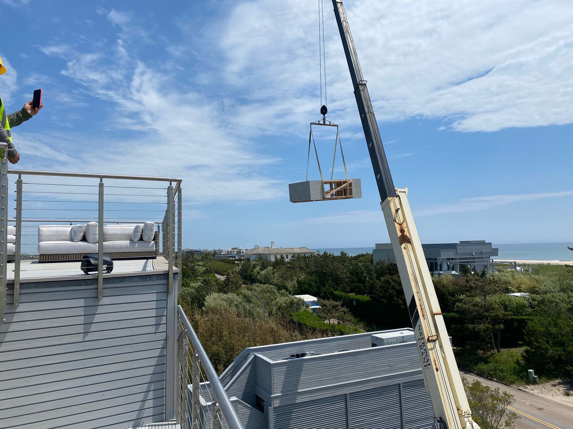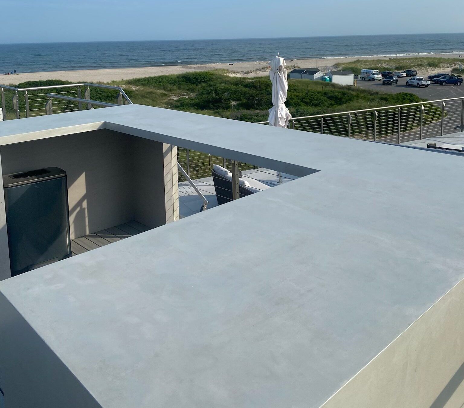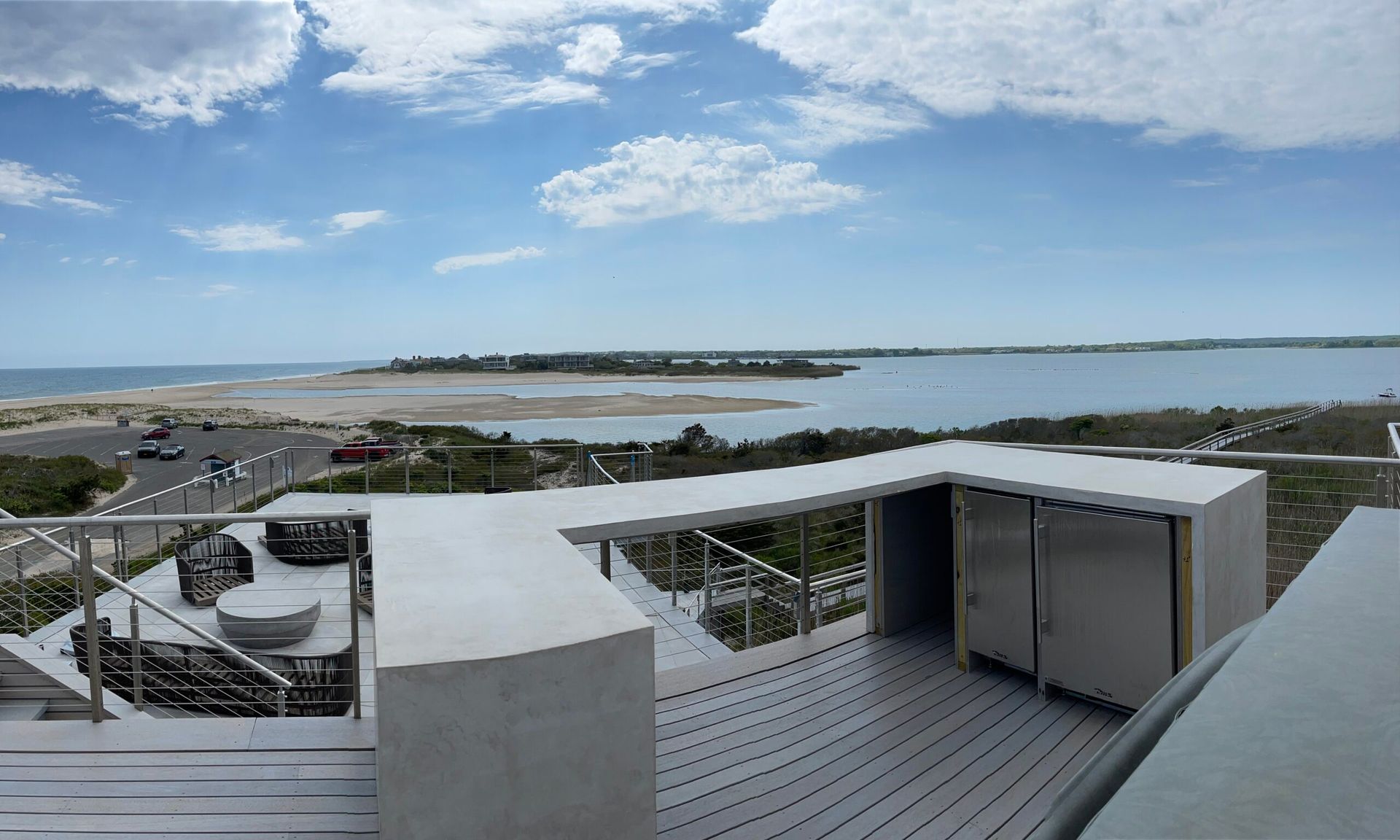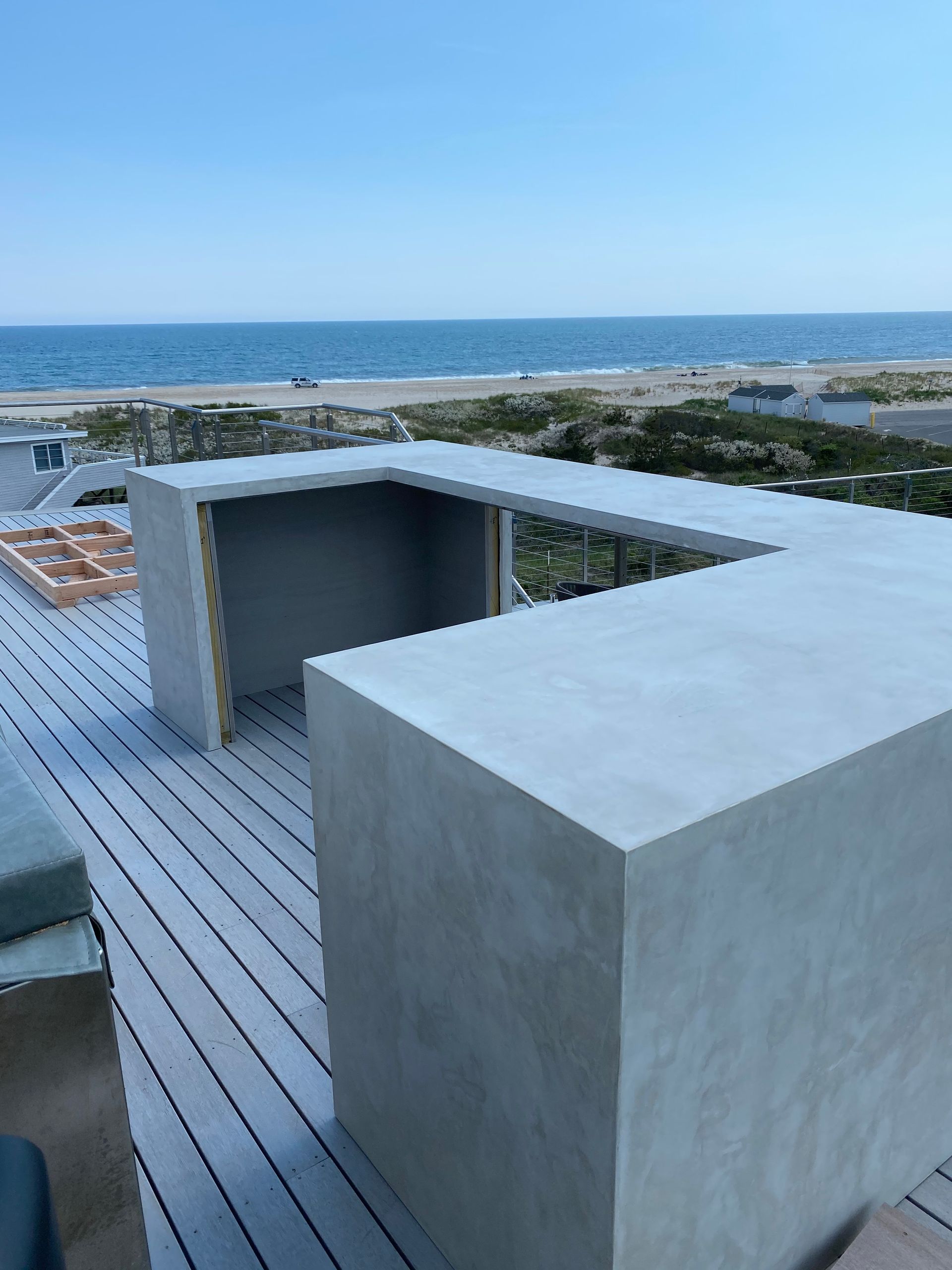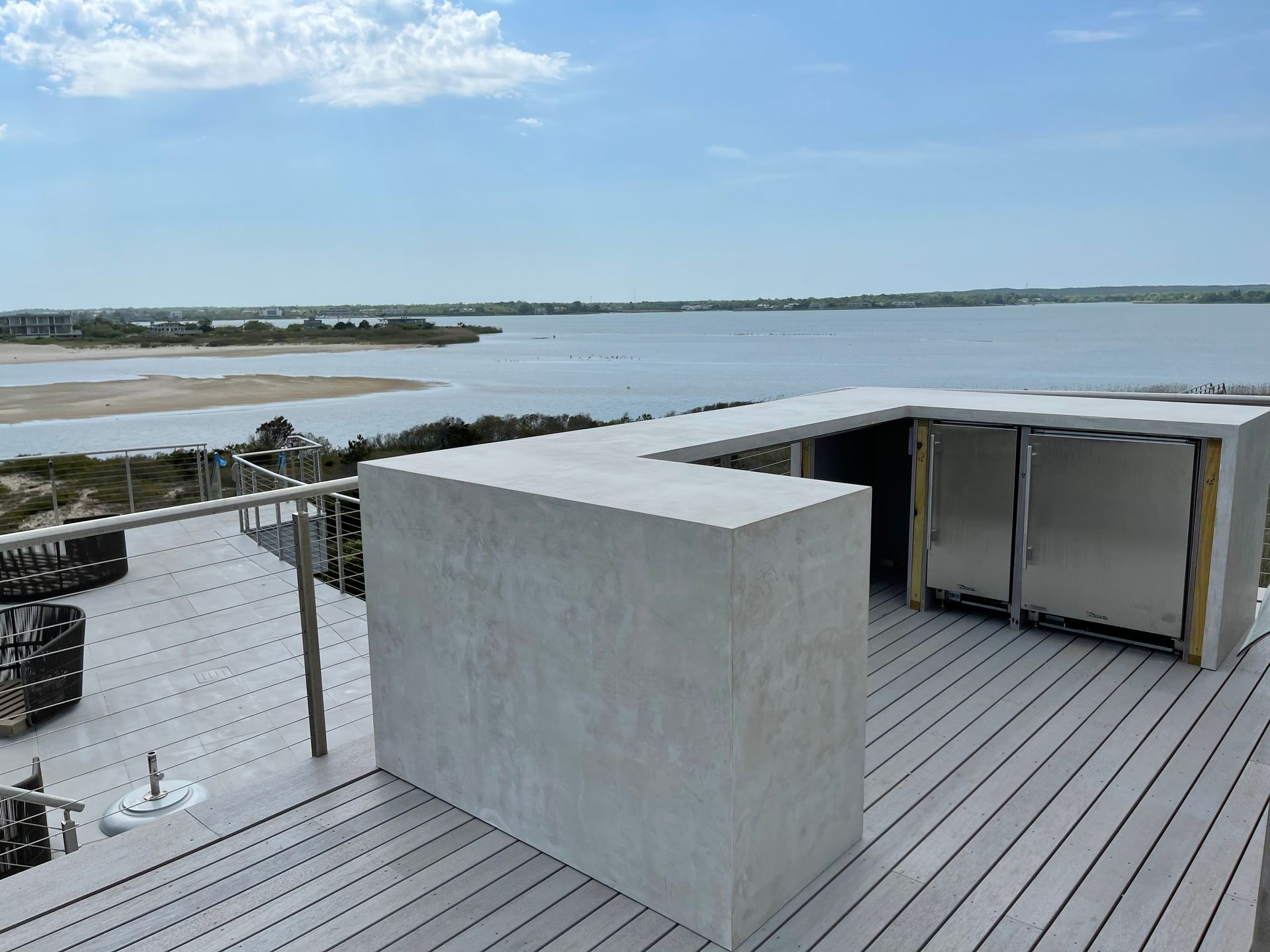 Our client requested a countertop which had waterfall edges and was seamless. The piece itself has a modeled finish in order to get more of a sense of the concrete in the piece. This massive piece required a crane in order to be placed on the roof overlooking the sea.