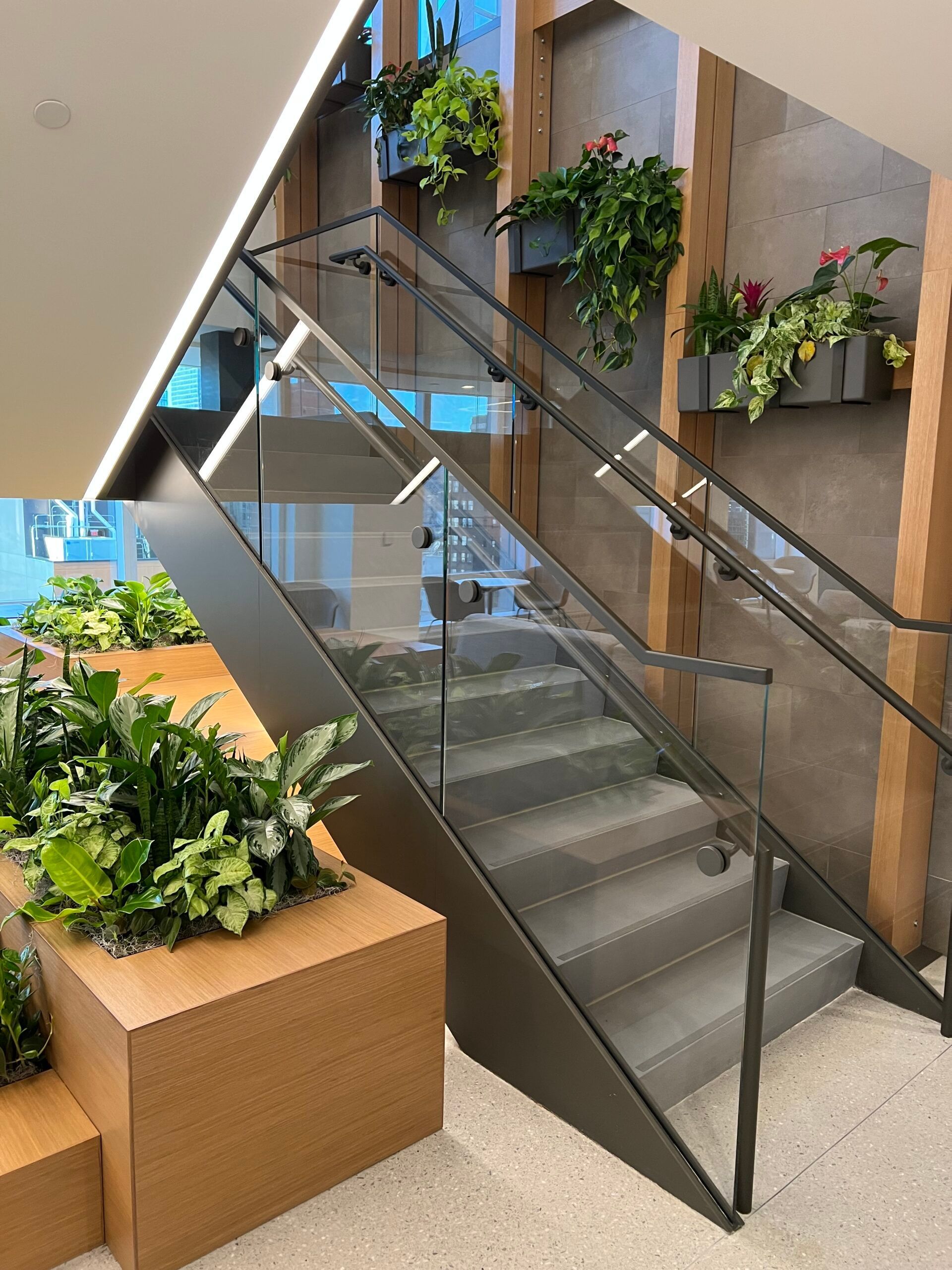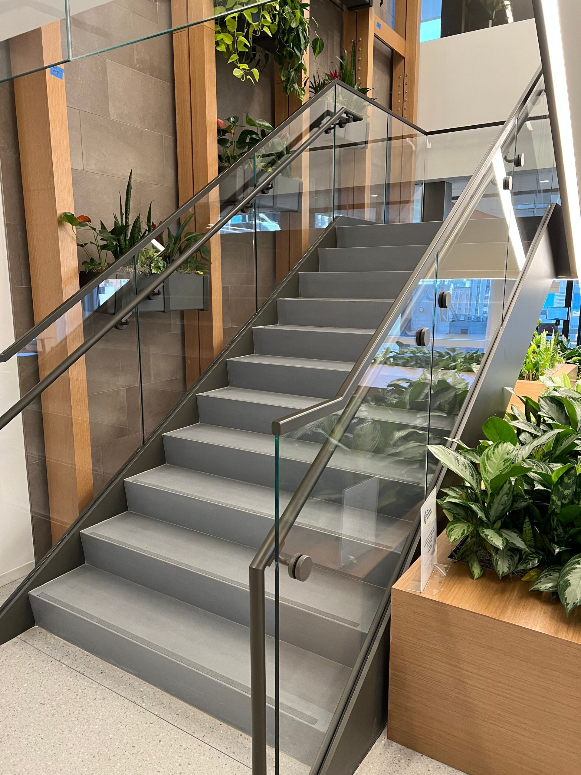 Due to the unique site conditions, each tread had to be meticulously crafted to take into consideration tolerances with the surrounding metal. This resulted in many unique conditions for each of the stair treads that were produced.